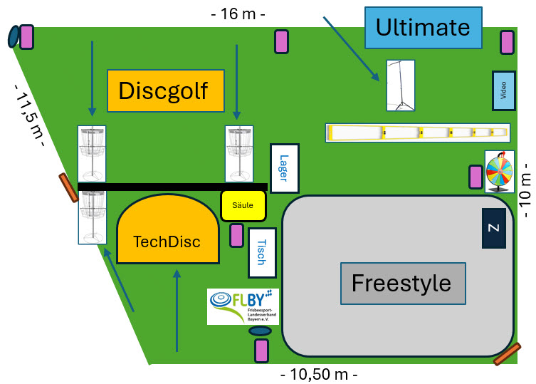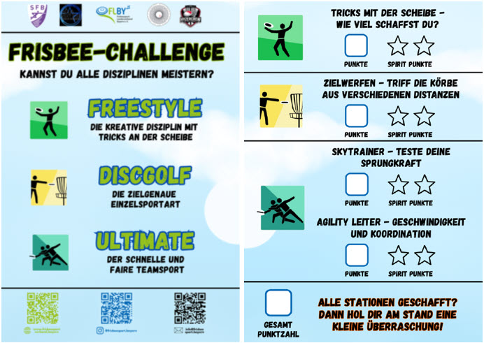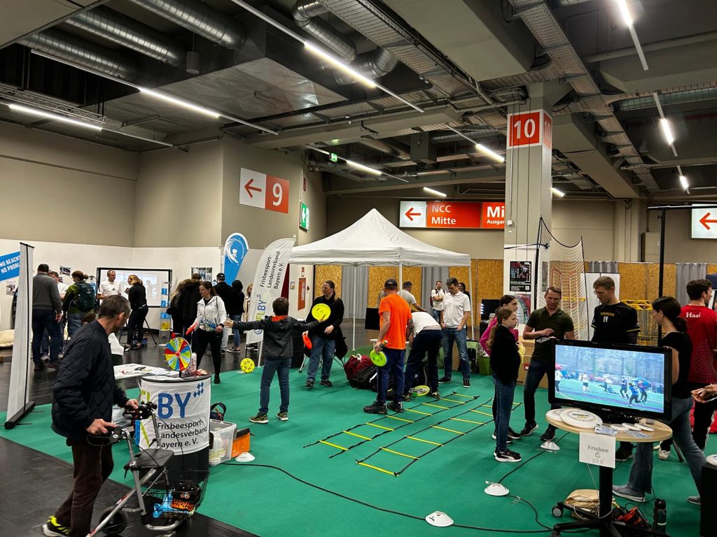 Vier Frisbee-Sportvereine bzw. Teams übernahmen die Standbetreuung: der DJK-BFC Nürnberg und der BSC Erlangen (Ultimate), für Discgolf die HyzerCrew Disc Golf Franken e.V. und aus München reisten die Freestyler*innen der Schwabinger Frisbee Buam an.