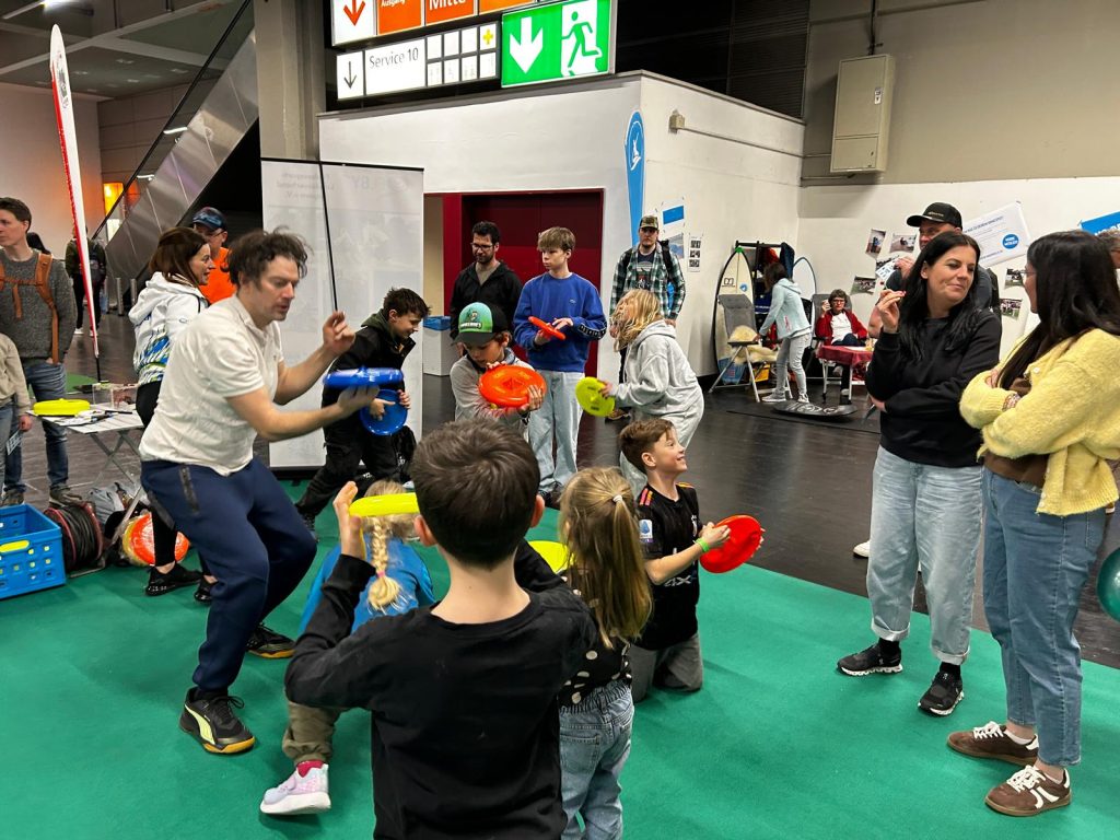 Wir waren gespannt, ob der Frisbee-Stand, sowie die Challenge angenommen werden würde, und waren beide Tage überwältigt von der positiven Resonanz. Quasi mit Messestart um 10 Uhr gab es bereits sehr viele Besucher am Stand und das steigerte sich in den frühen Nachmittagstunden noch um ein Vielfaches. Jeweils erst ab ca. 17 Uhr ebbte der Mitmachstrom etwas ab. Es zahlte sich aus, dass die Teams im Vorfeld über einen Standplan ihr Personal perfekt einteilten.